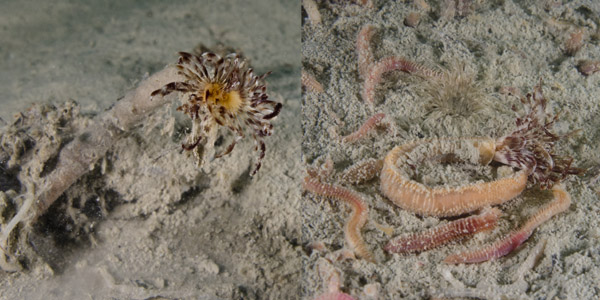 Durante l’ormai famosa immersione da record con acqua a 5 gradi, evento raro per i fondali riminesi e mai documentato da immagini, i Ragazzi della Gian Neri sono stati testimoni di un evento particolare: le basse temperature avevano indotto tantissimi animali che abitualmente vivono al disotto dello strato superficiale della sabbia a schizzarne fuori. Tantissimi anellidi, in particolare, potevano essere osservati con facilità, alcuni ammassati privi di vita altri solo storditi dal freddo.