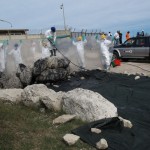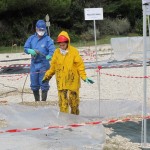 Difatti, con gli idrocarburi non si scherza.. Oltre ad essere pesantemente dannosi per l’ambiente, sono altamente nocivi e pericolosi anche per chi interviene, che si dovrà proteggere con specifici DPI ed attrezzature. Anche le modalità operative devono essere codificate e saranno profondamente differenziate a seconda del substrato costiero coinvolto (sabbia, ghiaia, roccia, elementi artificiali, etc.). L’area coinvolta (pollution area) andrà opportunamente delimitata e su di essa creati specifici percorsi e zone di smaltimento e decontaminazione, allo scopo di non interessare le zone adiacenti. Una prima squadra, “survey team” effettuerà un sopralluogo, con misurazioni e documentazioni fotografiche da sottoporre al comitato d’emergenza, che definirà in brevissimo tempo le procedure d’intervento.